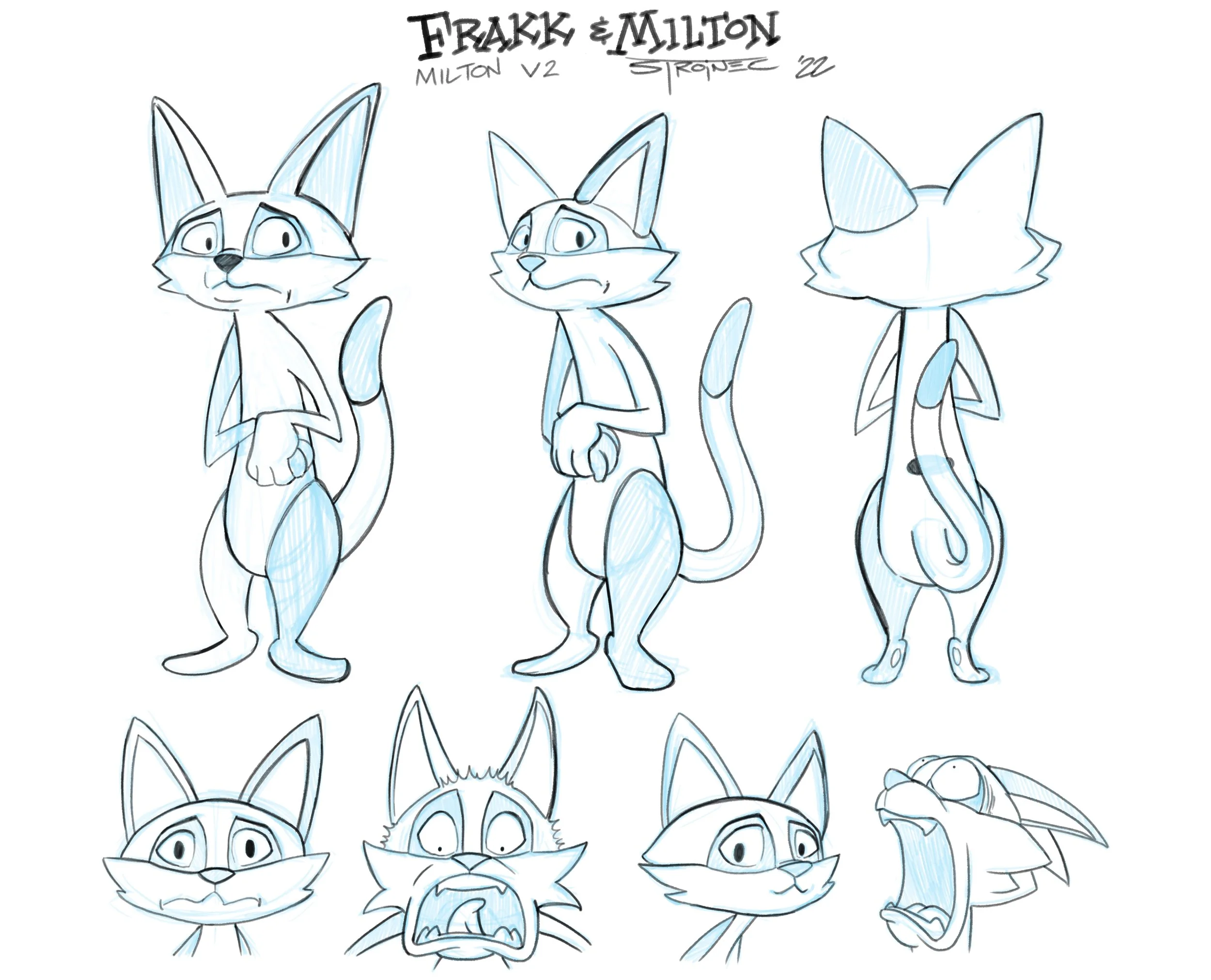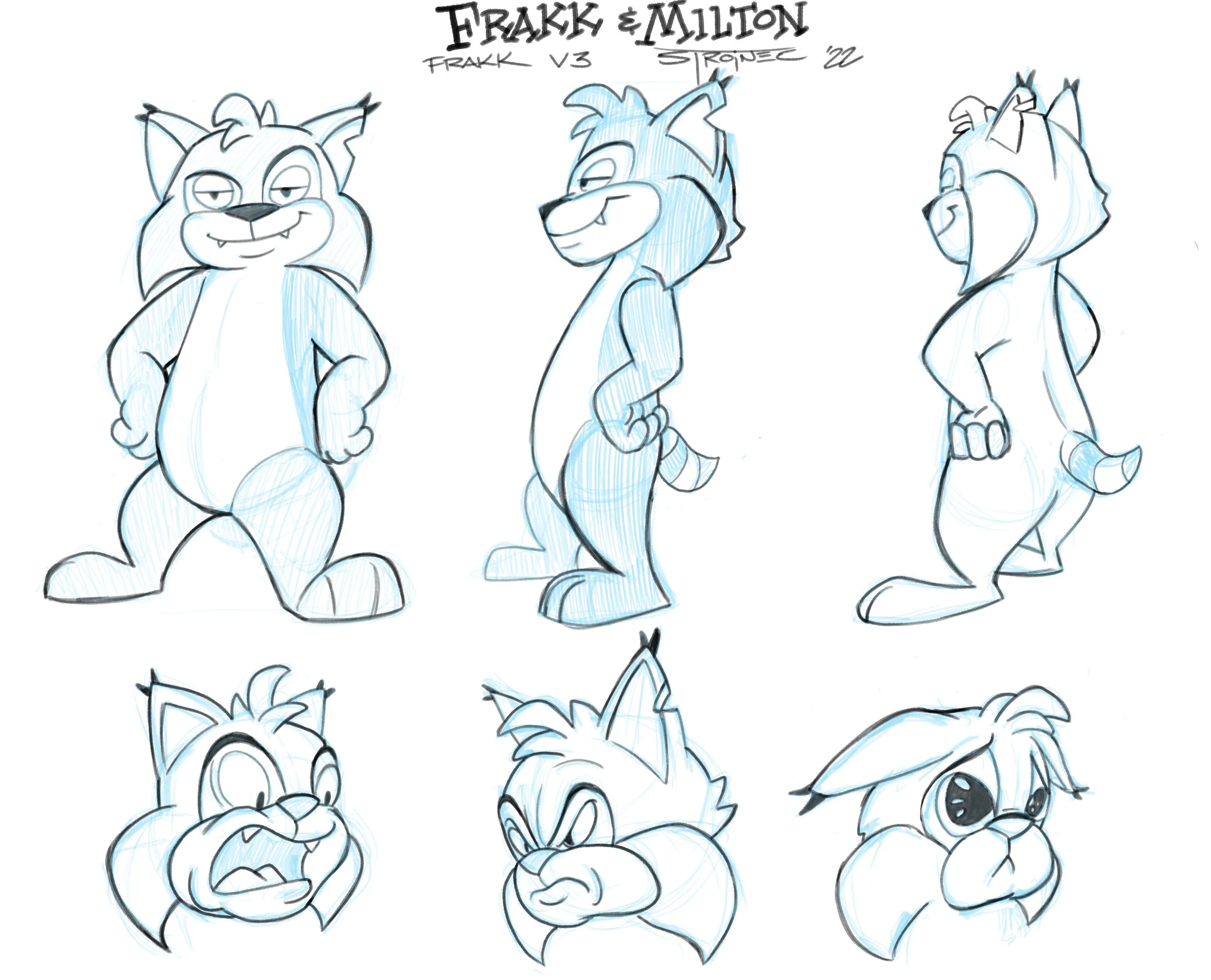 Frakk & Milton is an animated series that I have slowly been developing since 2013 that focuses on Frakk, a young mischivous Bobcat and his anxious house-cat friend, Milton, who is dragged along on all of Frakk’s misadventures around the woods Frakk calls home and Milton’s newly developed neighborhood, often involving the animal residents from both worlds.